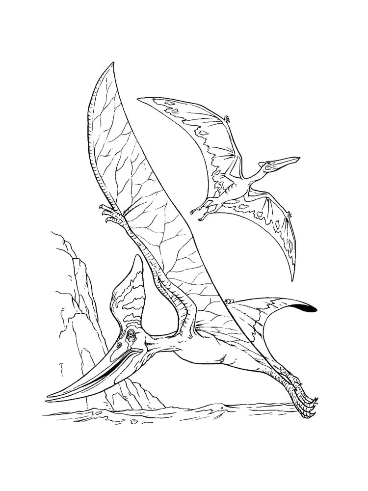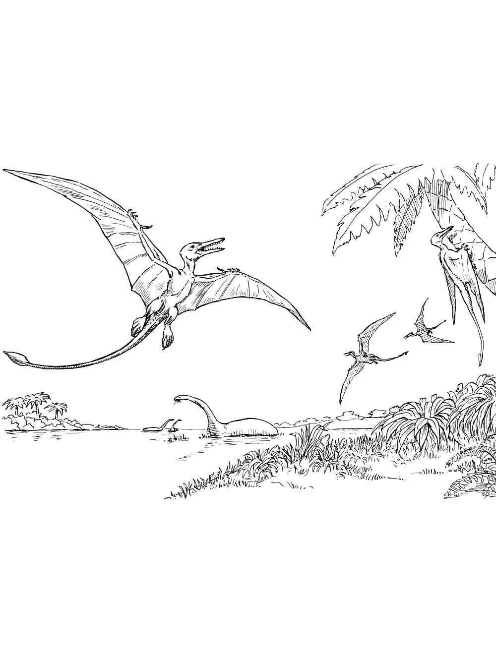 Огромный интерес у многих детей вызывают рептилии. Эти древние существа поражают своей силой и мощью. Познакомиться с ними поближе и узнать об их строении можно, раскрашивая различные раскраски с изображением птеродактиля. Птерода́ктиль— род птерозавров, ископаемые остатки представителей которого были обнаружены преимущественно в Зольнхофенских известняках Германии, которые датируются концом юрского периода. Птеродактили были плотоядными птерозаврами и охотились преимущественно на рыбу и мелких животных. Как и у всех птерозавров, у птеродактилей были крылья, образованные кожно-мышечной мембраной, которая простиралась от удлинённого четвёртого пальца крыла к задним конечностям. Приблизительно такое же строение тела можно наблюдать у летучих мышей. На картинках изображены разные птеродактили - большие и грациозные с огромным хвостом, маленькие и полные, динозавры с необычным узором на коже. В основном, динозавры представлены в зеленых, оранжевых или фиолетовых цветах, но на бумаге детская фантазия не ограничена, и вы можете использовать любые цветовые оттенки. Благодаря раскраске, вы можете оживить рептилию прямо на своём письменном столе.